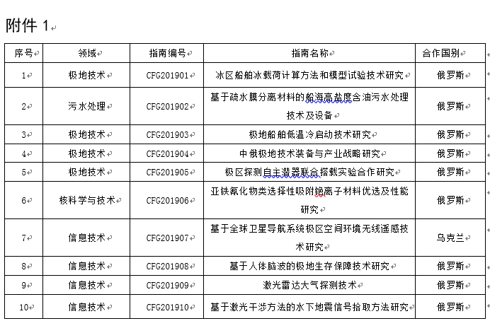 集团本年度重点支持对俄罗斯和乌克兰的合作,支撑“一带一路”联合实验室建设,公司经过指南征集、专家评审,确定本年度指南(详见附件1)。其他项目指南纳入项目库,分年度择优发布。