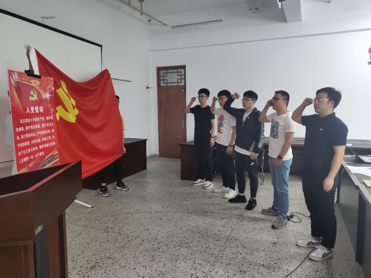 通过大会决议后,赵洛印作为领誓人带领四位预备党员在党旗下进行庄严的宣誓。