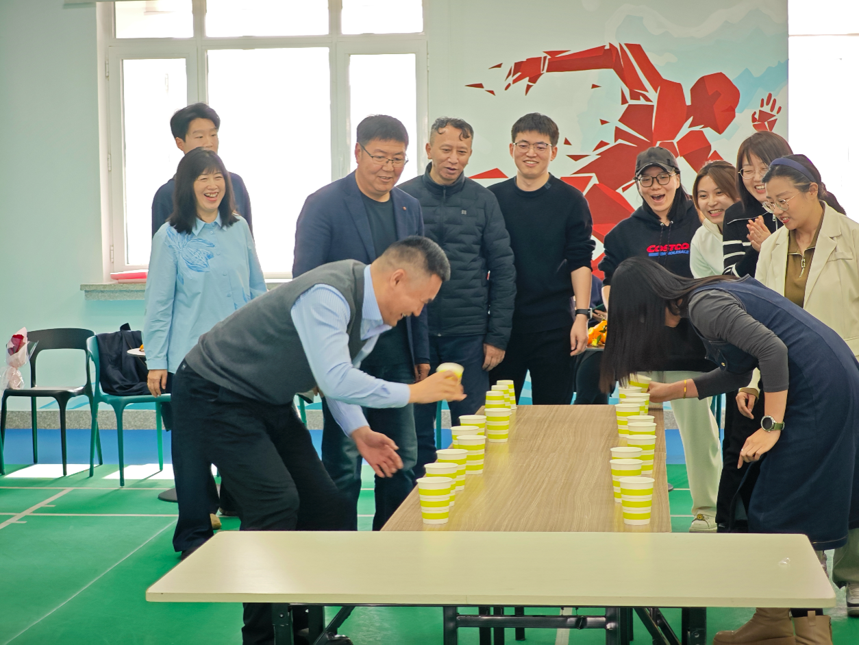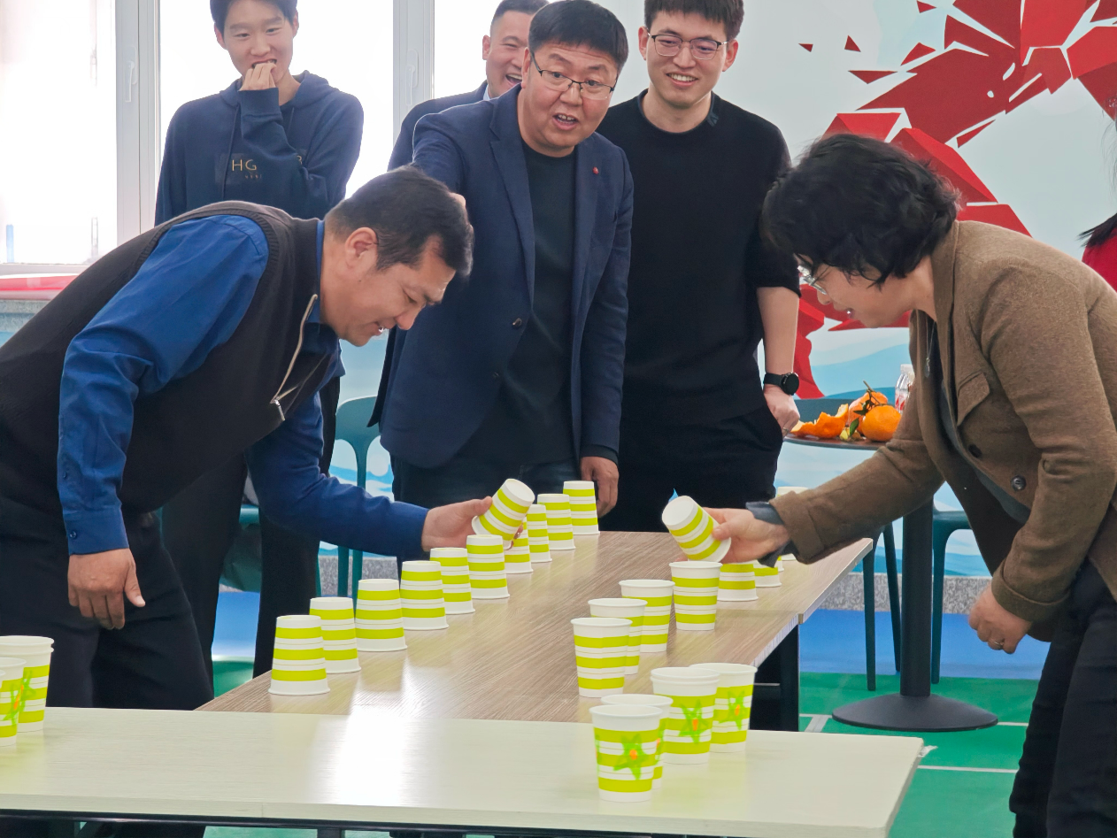 翻杯子比赛·凝聚人心。参赛队员们手中的杯子快速旋转,一度引得大家屏住呼吸,比赛瞬间紧张了起来,队员们沉着冷静,默契配合,通过比赛拉近了彼此之间的距离。