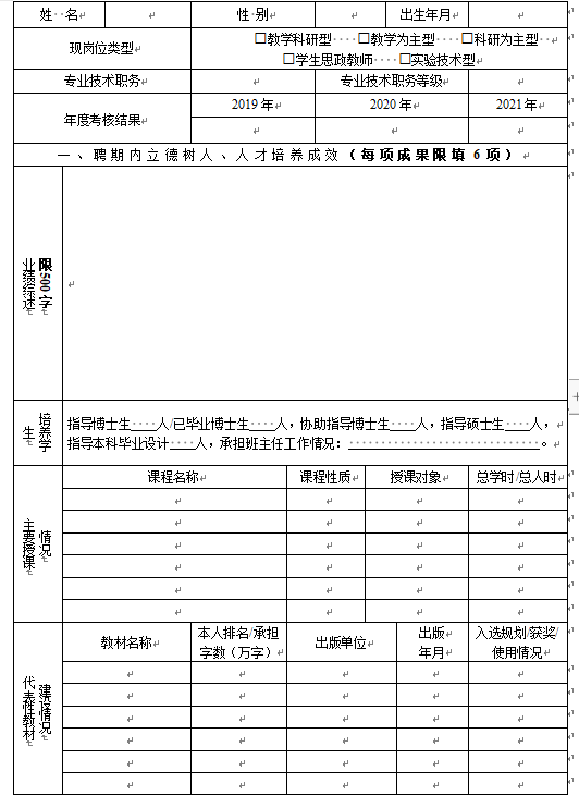 备注:填报《xcsports第四轮教师岗位聘期考核登记表》过程中严格遵守学术道德。