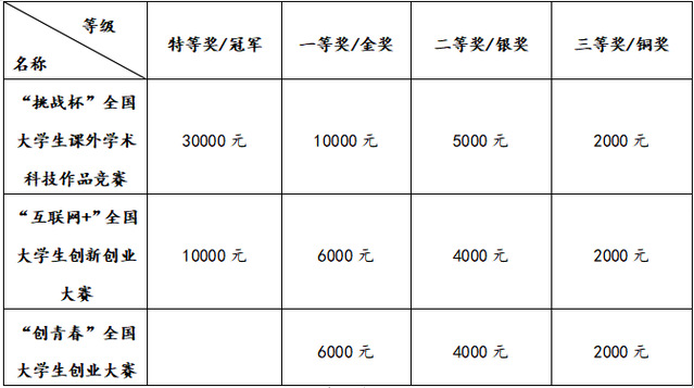 4.教师指导同一项目参加不同类别竞赛,按照最高一项奖励标准执行,不重复奖励。
