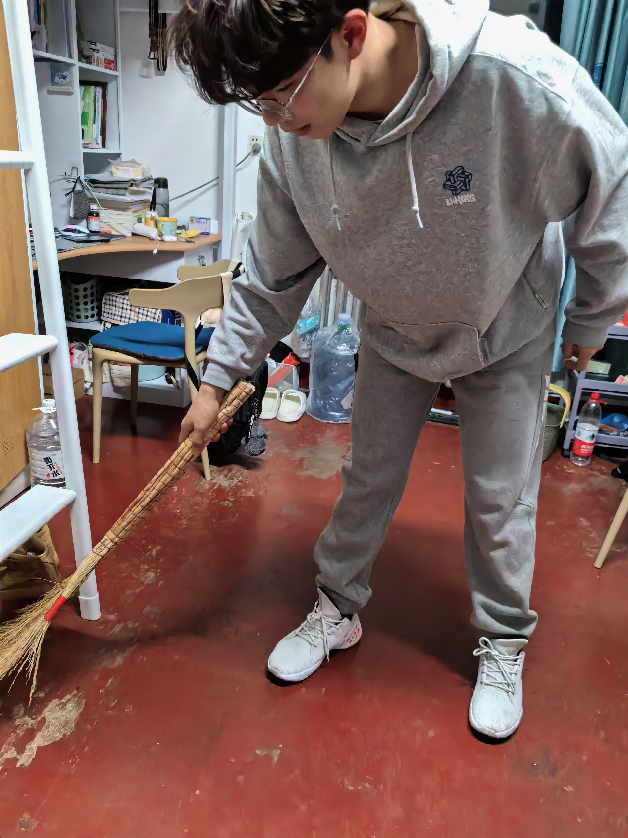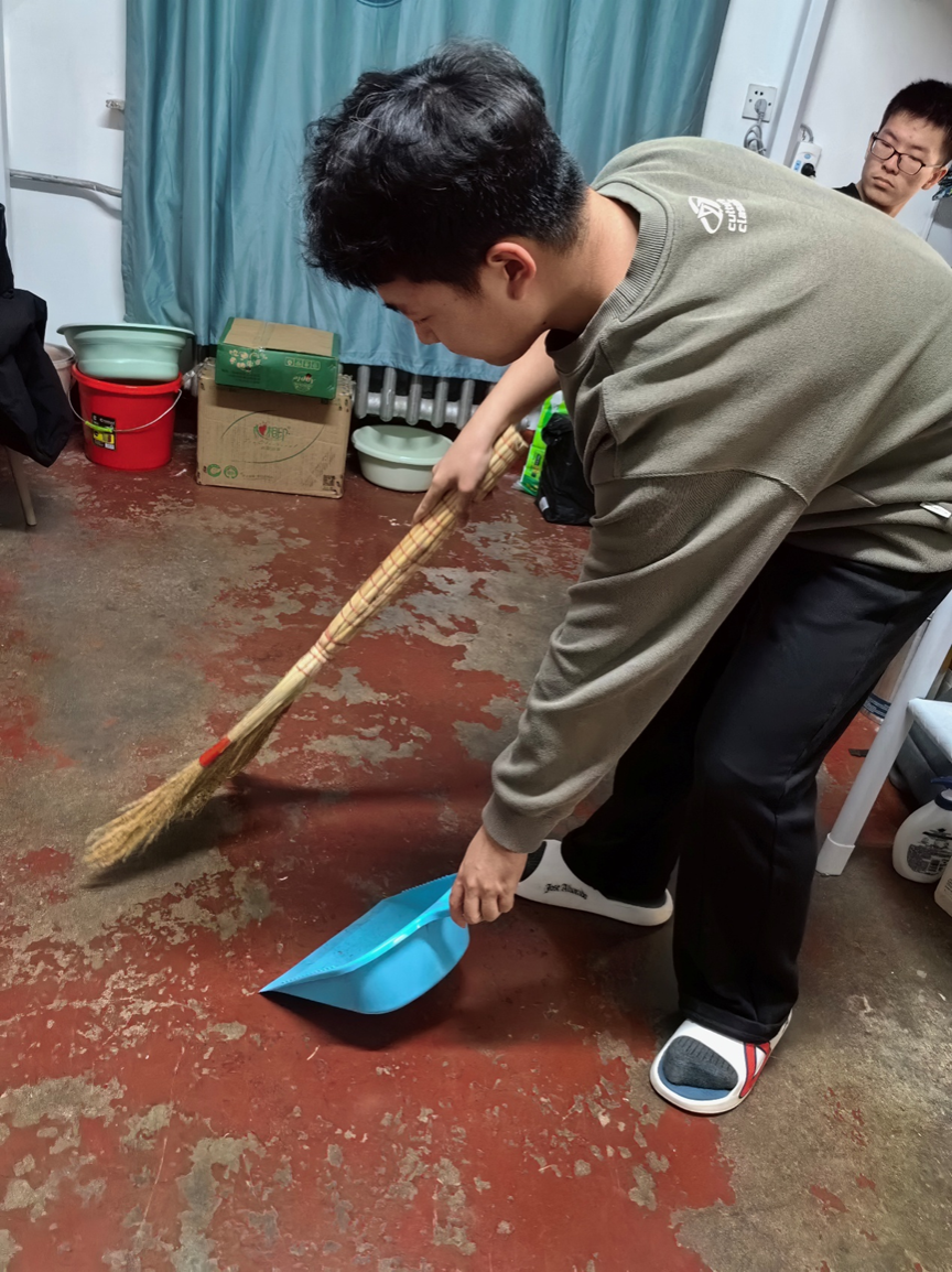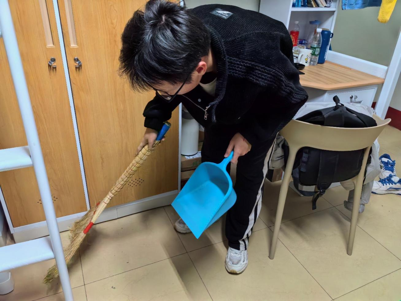 李凯导员深入各寝室,与同学们一起动手清扫,并为大家提供实用的清洁小技巧。他与同学们亲切交流,分享保持寝室整洁的心得。在他的带动下,大家干劲十足,纷纷拿起工具投入到清扫中。李凯导员还特别关注一些容易被忽视的细节,比如如何整理桌面杂物、如何合理收纳衣物等,他的耐心指导让同学们受益匪浅。清扫过程中,李凯导员还不忘鼓励大家,强调保持寝室整洁不仅是为了美观,更是为了营造一个舒适的学习和生活环境。他的参与让这次清扫行动变得更加有意义,也让同学们感受到了导员的关怀与支持。在李凯导员的带领下,寝室焕然一新,大家也从中体会到了劳动的快乐和团队协作的重要性。