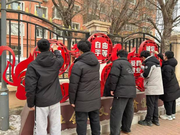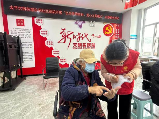 2月26日志愿公益部邓畅作为领队,带领24级同学一起进入松锅社区,开展相关活动,如清洗并学习警示标语,为理发老人登记等活动