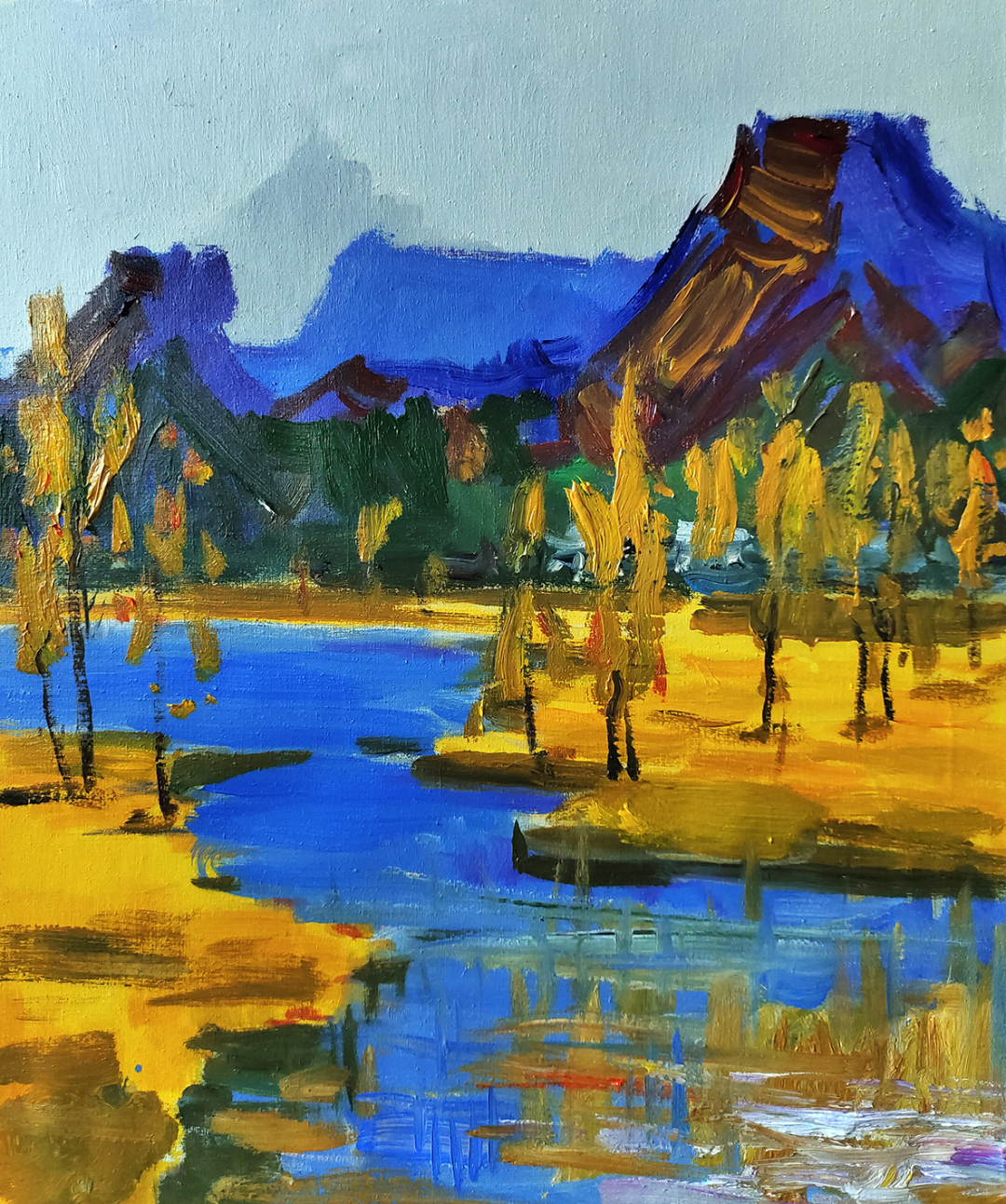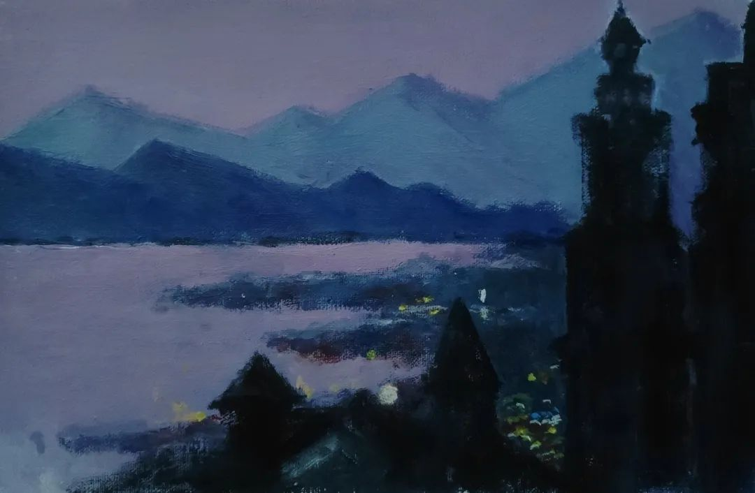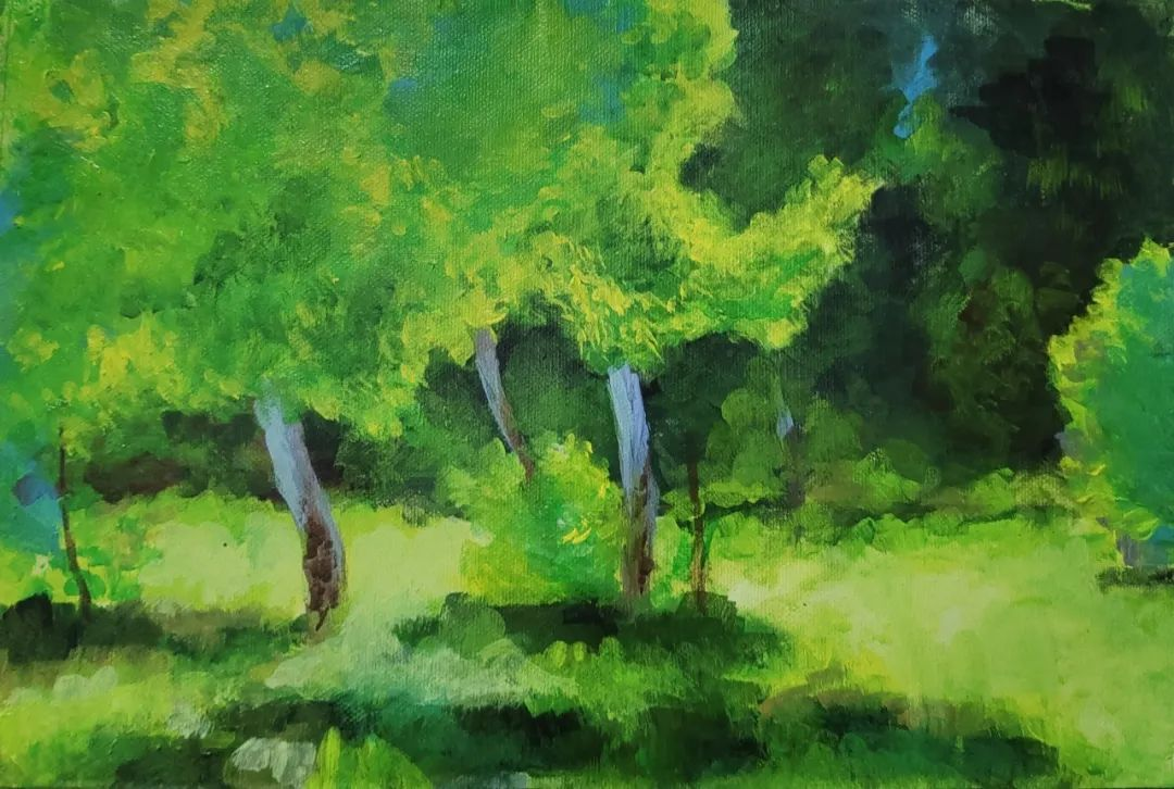 学习之余的零星时间能浸润在艺术世界,是幸福乐事。画布上有宇宙天地,任心绪畅游。