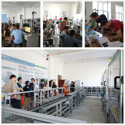 在智能车创新实验室,智能车竞速赛引起了学员们极大兴趣,焊接电路、组装车体、程序编写,学员们独立实现了从零件到整车的制作。参考中国恩智浦杯智能车竞赛规程,举行了暑期班智能车竞速赛,结业仪式上颁发了比赛证书。在西门子联合实验室和罗克韦尔自动化实验室,学员们学习了利用自动化领域先进技术和基本理论解决实际控制问题。新建成的HEU-Phoenix工业4.0示范生产线为学员们展示了最先进的智能制造技术。