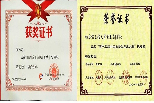 黄玉龙一心助力国家海防建设,2017年解决了水下无人潜航器自主导航中存在的难题,提高了无人潜航器在复杂的海洋水下环境中长时间自主导航的可靠性和精度。研究生在读期间,黄玉龙以第一作者的身份发表或录用学术论文共44篇,其中包括SCI论文27篇,国内顶级控制期刊《自动化学报》6篇,A类国际会议4篇。其研究成果应用于我国海军导航系统,为我国海军装备的技术提升做出了贡献。2017年以第一作者在《IEEE Transactions on Automatic Control》等国际高水平期刊上发表或录用SCI论文13篇。黄玉龙曾获研究生国家奖学金4次、工信创新创业奖学金特等奖和一等奖、中国船级社最佳论文奖学金荣誉称号等荣誉。