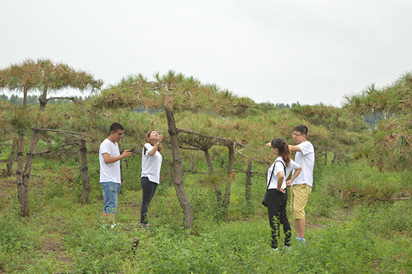 进入林场主园区后,服务队全体成员按林场种植栽培种类,在讲解员带领下依次参观各类型林木栽培生长情况。经过景观植被、行道苗木等林木培育区域时,队员就林木苗种市场需求、栽种培育方法等重要问题做详细了解。队员们还特别对林场喷灌自动控制间进行参观,同时就林场生产管理中专业相关问题进行交流讨论。