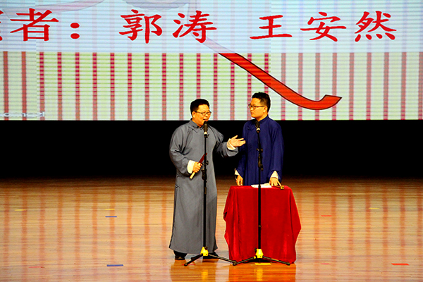 本次毕业晚会由欢快的舞蹈开场,晚会首先是颁奖环节,各专业毕业生代表为王辉、王伟、黄卫权、张敬南四位教师颁发“我最喜爱的教师”奖,陈万海为自动化公司25名员工颁发“校优秀毕业生”奖,鼓励毕业生不忘母校,再接再厉。随后进入文艺表演环节,依次演出由郭涛及毕业生王安然带来的相声、12-417班以剪影形式重温大学四年中精彩瞬间的创意节目、2016届班长及团支书集体舞等精彩节目。场上与场下气氛融洽,现场观众积极参与微信墙活动,表达毕业心语与祝福。