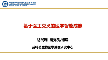 中国科公司深圳先进技术研究院研究员胡战利带来了题目为《基于医工交叉的医学智能成像技术》的学术报告,主要介绍了课题组在医学PET智能成像领域所开展的一些工作,讨论了PET成像作为核医学尖端技术的代表,在肿瘤、心血管和神经等疾病早期诊断中发挥的重要作用。