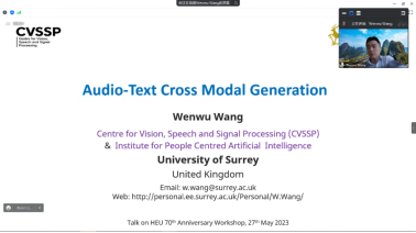 英国萨里大学教授王文武带来了题目为《Audio-Text Cross Modal Generation》的学术报告,主要介绍了音频片段中的音频事件和场景以及解释文本信息,通过音频信号处理和自然语言处理,实现跨模态音频文本生成。