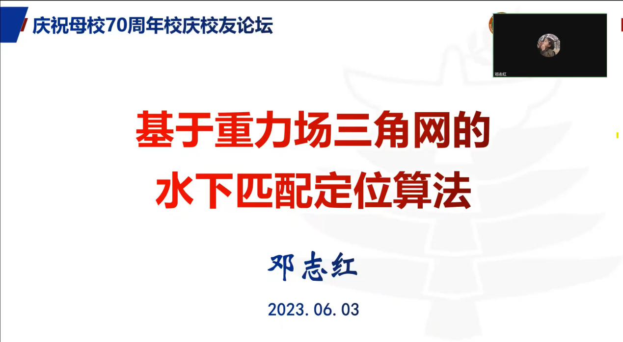 北京理工大学教授邓志红带来了题目为《基于重力场三角网的水下匹配定位算法》的学术报告,报告充分利用计算几何处理点线面体的优势,将传统栅格重力场背景图变换为重力场三角网,在此基础上,开展适配区选取、基于面线点的重力匹配算法研究,结果表明,所提方法能够更加有效利用重力场空间特征和几何特征,匹配效果好。