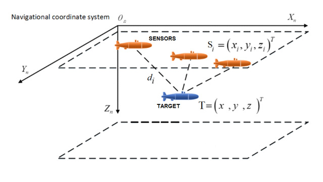 The most important part of cooperative localization is to measure the relative position (RSS in this case) of the targets with respect to the sensors using acoustic waves. However, these measurements are very noisy due to harsh underwater environment. While other limiting factors related to underwater environment cannot be controlled, the accuracy of cooperative localization can still be optimized by maximizing the observability of sensors by keeping them at maximum observable location. These positions are called optimal formation of the sensors.
