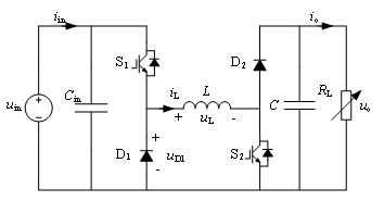 双管Buck-Boost(double-switch Buck-Boost,DSBB)变换器适合于作为直流分布式电源系统中的前端接口变换器,它具有良好的适应电源端电压宽范围变化的特点。对于DSBB变换器,目前常用的调制策略主要有同步调制(synchronisation modulation,SM)、交错调制(interleaved modulation)以及组合控制模式。这三种调制方式在电感电流纹波、转换效率以及控制复杂度等方面各有差异,如何获得变换器综合性能的平衡是值得研究的一个问题。