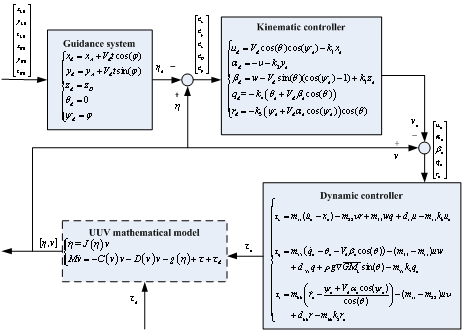 欠驱动UUV三维空间运动控制器框图