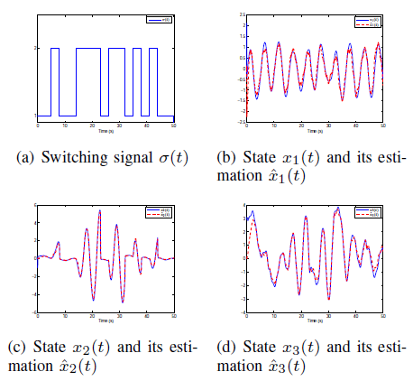 该方法充分考虑了系统奇异性与切换特性下故障估计观测器的设计问题,并完全消除了干扰对于故障估计性能的影响。通过在一类切换电路系统上的仿真试验,所提出的方法取得良好的跟踪效果,同时也为切换系统故障诊断与容错设计在工程的应用奠定了理论与实践基础。