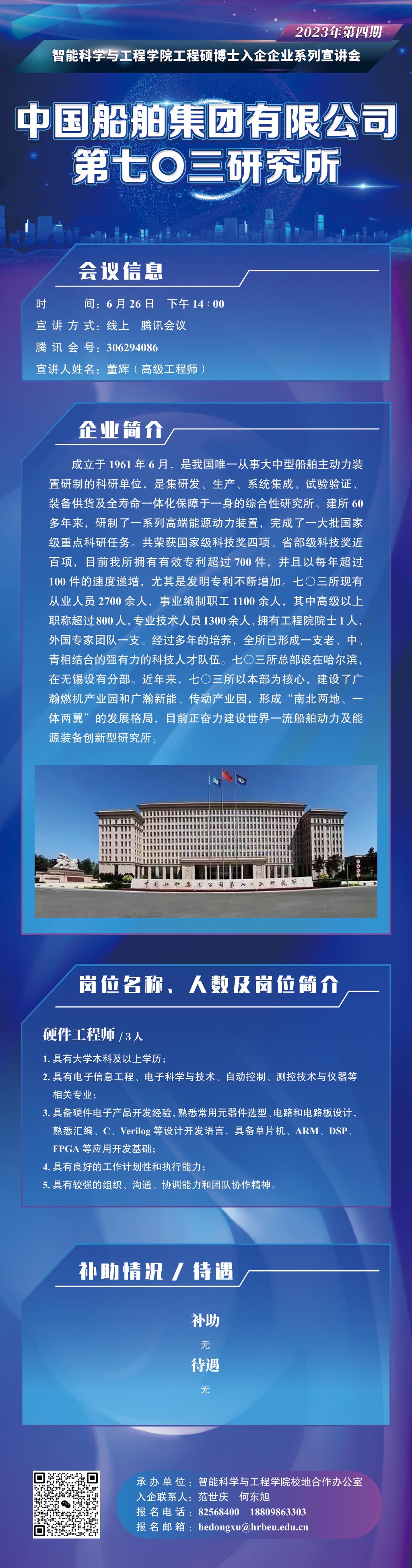 xc体育工程硕博士入企企业系列宣讲会第四期——中国船舶集团有限公司第703研究所