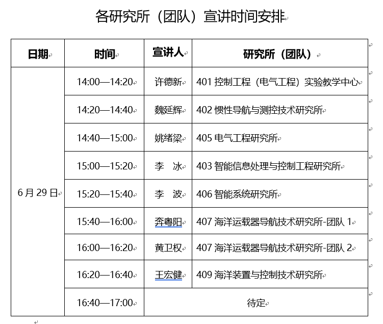 各研究所(团队)具体宣讲时间安排见附件1。