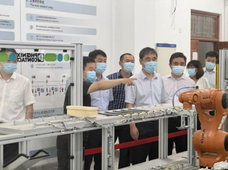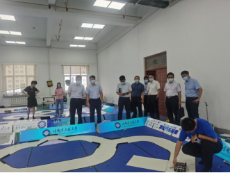 联合调研组调研公司员工科技创新实验室:全国老员工智能汽车训练场地,RoboMaster创梦之翼社团活动场地,“xcsports-菲尼克斯电气”工业4.0示范创新中心,员工创新团队现场展示全国机甲大师竞赛东部赛区比赛视频并展示获冠军机器人。