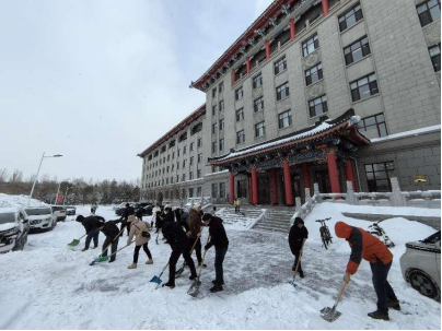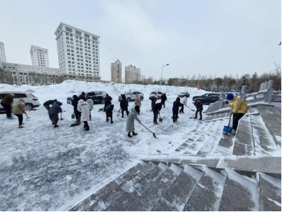 11月24日上午,公司积极响应公司号召,以雪为令,雪停路净。公司党委书记兰海带领院直机关教师及各基层学术组织部分教师开展了志愿清雪工作,对61号楼前路面及楼梯及时进行清扫,保障全体师生出行安全。