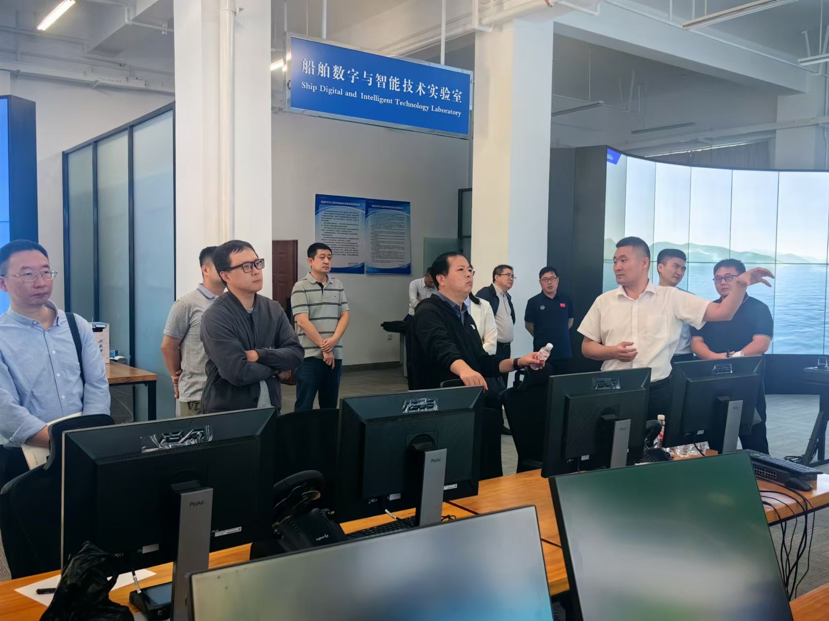 刘鹏一行参观了公司船海装备智能化技术与应用教育部重点实验室。蔡成涛介绍了公司与中船集团在人才培养、科学研究、平台建设等方面取得的合作成效,以及公司在船海装备、数字孪生方面的科研成果。刘鹏希望双方拓宽合作领域,将技术优势结合,服务国家高水平科技自立自强,全面开启双方在科学技术创新、重大任务攻关、高质量人才培养等方面的深入合作,共同为我国国防科技事业和社会经济发展做出新的更大贡献。