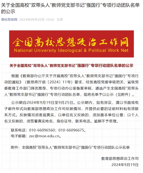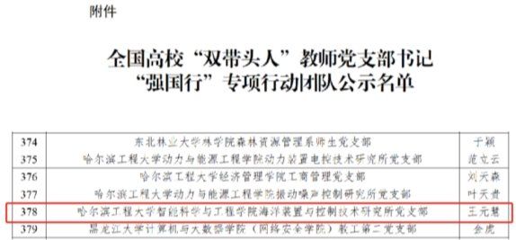 近日,教育部思想政治工作司发布《全国高校“双带头人”教师党支部书记“强国行”专项行动团队名单》,xc体育海洋装置与控制技术研究所党支部入选全国高校“双带头人”教师党支部书记“强国行”专项行动团队。