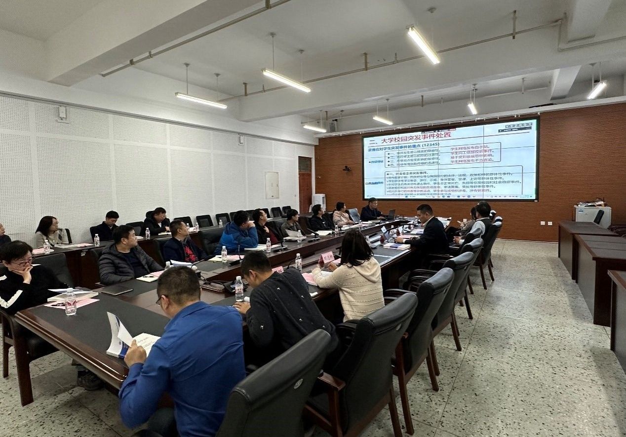 徐宝贵副书记对校园突发事件的处理和校园心理危事件的干预进行报告。徐书记列举了大公司园突发事件及特点,并对突发事件的处理办法进行讲解,然后对校园心理危机事件及种类进行介绍,重点从研究生导师角度介绍了校园心理危机事件的干预与处理进行说明。徐书记表示培养一个具有公司人才培养目标的好员工,其标准就是具有家国情怀,创新精神,国际视野,合作担当,身心健康,并且能够担当民族复兴重任的智能英才。