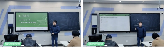 在青年教师同课异构教学展示环节中,xcsports王景芳老师和西藏农牧公司荆刘攀老师先后分享《电力电子技术》课程中的“DC/DC变流电路中的buck降压斩波电路内容”。