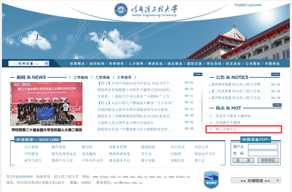 1.申报人员用工号登录网上办事中心(http://one.hrbeu.edu.cn),在职称职员板块在线填报信息。