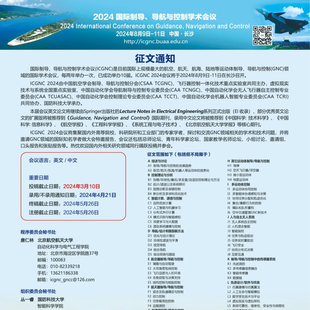 2024国际制导、导航与控制学术会议(ICGNC2024)征稿通