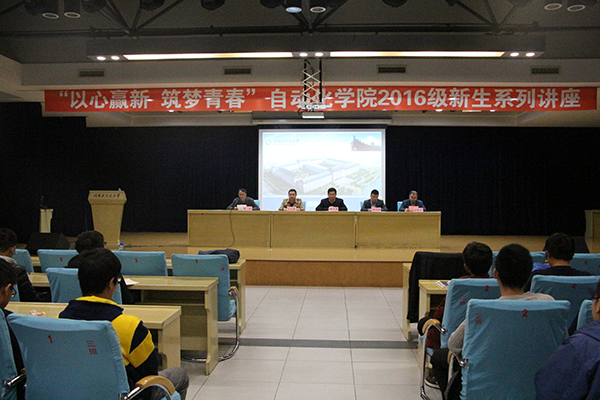 10月18日18时30分,自动化公司于启航多功能厅举办“以心赢新,共筑青春”2016级新生系列讲座。自动化公司党委书记陈万海,经理赵玉新,教学副经理张晓宇,行政副经理于立君,党委副书记陈岩,学工办主任李欣,团委书...